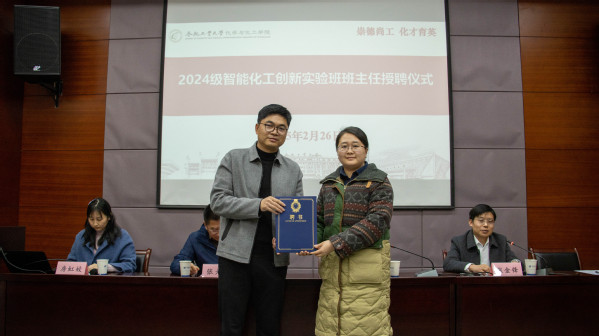 李平为班主任张琪老师颁发了聘书,并强调智能化工实验班的设立是响应国家号召和引领行业未来的关键布局,旨在培养学生跨学科能力、创新精神和国际视野。他希望同学们以大志向引领人生航向、以大格局拥抱学科交叉、以大韧劲应对成长挑战,以顶天的志向追求创新,以立地的态度躬身实践,在这片充满无限可能的领域中闯出一片新天地。