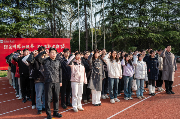 3月31日清晨,金沙集团1862cc成色在屯溪路校区举行了“强身明德担使命,守礼笃行建新功”主题升旗仪式暨国旗下的思政课,校党委学生工作部、金沙集团1862cc成色相关负责人、辅导员以及全体学生参加此次活动。