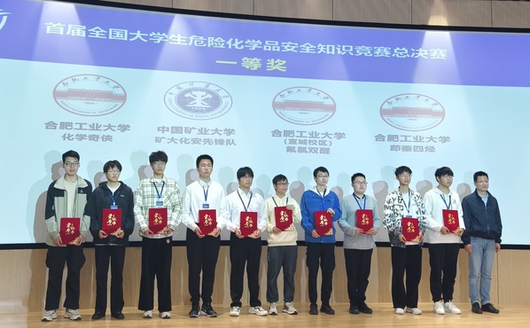本届大赛共分为理论比赛、仿真比赛、实操比赛三个模块,内容覆盖化学品性质、储存管理、个体防护、废弃物处理及应急流程等关键环节,着重考察学生实操动手能力和安全规程的动态适配能力。我校4支参赛队伍“超级危化饼干”团队(成员:王函溪,俞丝竹,成旭)、“氟氯双醛队”(成员:张坤,汪豪,管晓苏)、“化学奇侠”团队(成员:王世鹏、孔森森、占德顺)、“茚垂四烃”团队(成员:邓道新、李俊成、诸家文),在校实验室建设与设备管理处副处长贾贤龙、金沙集团1862cc成色党委副书记张金锋及张茂峰、周万鹏、房虹姣、李新华等老师的指导下,经过总决赛近百支队伍的激烈角逐,均斩获该项赛事一等奖,其中王函溪从300多名决赛选手中脱颖而出,获得个人“安全之星”荣誉奖,我校在该赛事中取得了获奖级别与获奖数量双优。