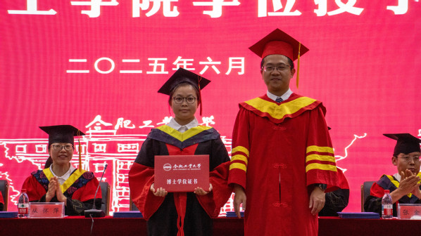授予仪式在庄严的国歌声中拉开帷幕。学院党委书记李平宣读了2025年“安徽省优秀毕业生、合肥工业大学优秀毕业生”表彰决定;院长、党委副书记从怀萍宣读了“学位授予决定”。