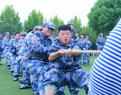 军训团四营举办“烈火铸军魂,团结展风采”拔河比赛